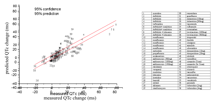This method doesn’t simply categorize compounds as having low or high risk of some level of QT prolongation, but can actually assign a predicted amount of QT change which may occur at various tested concentrations.